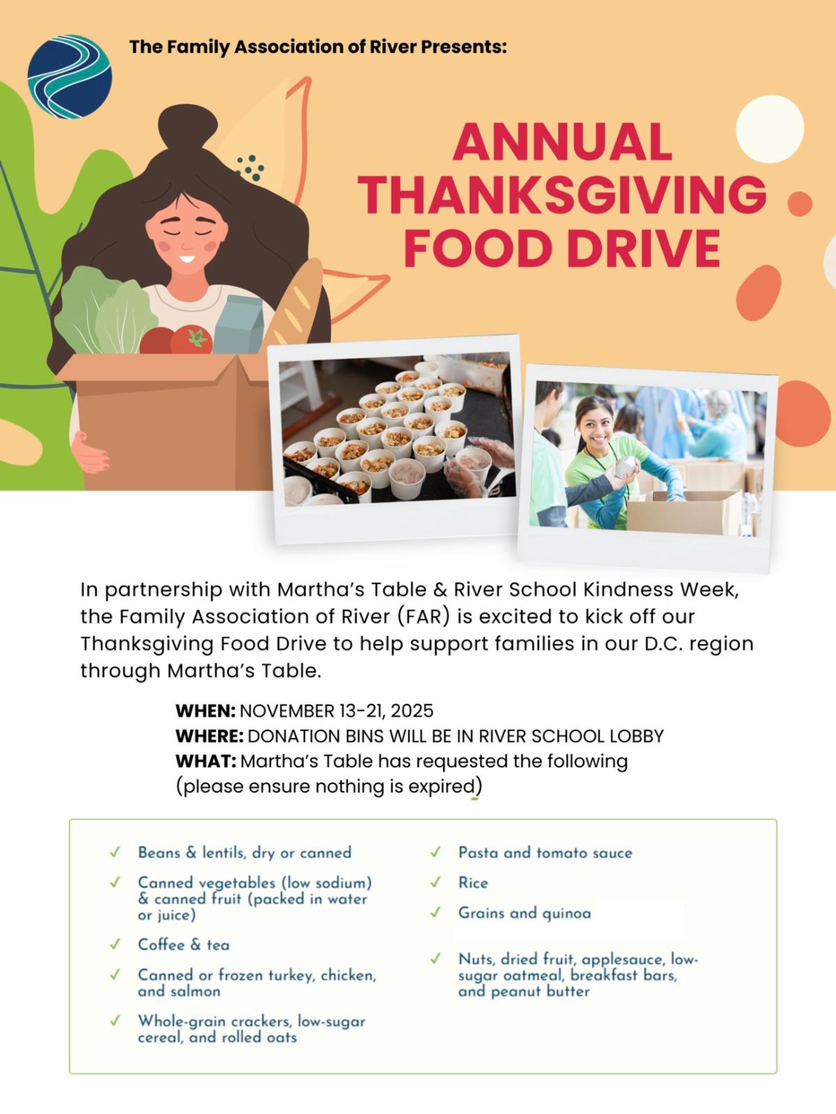 FAR’s Thanksgiving Food Drive to support families in the DC region will support Martha’s Table.